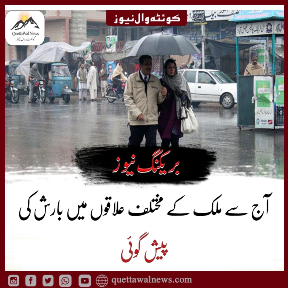 محکمہ موسمیات نے آج سے ملک کے مختلف علاقوں میں بارش کی پیش گوئی کردی۔