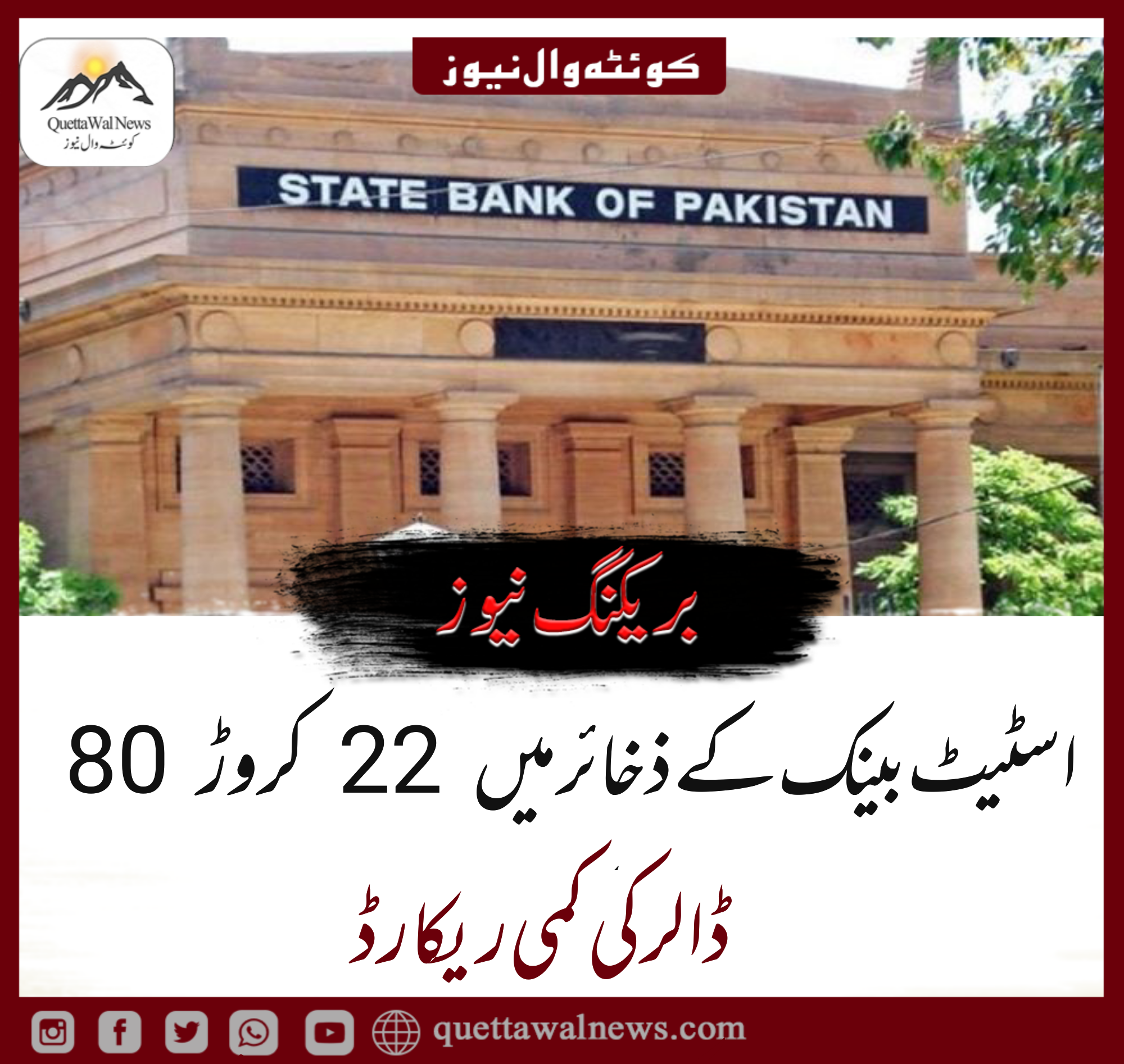 کراچی: اسٹیٹ بینک آف پاکستان کے ذخائر میں 22 کروڑ 80 لاکھ ڈالر کی کمی ریکارڈ کی گئی ہے۔