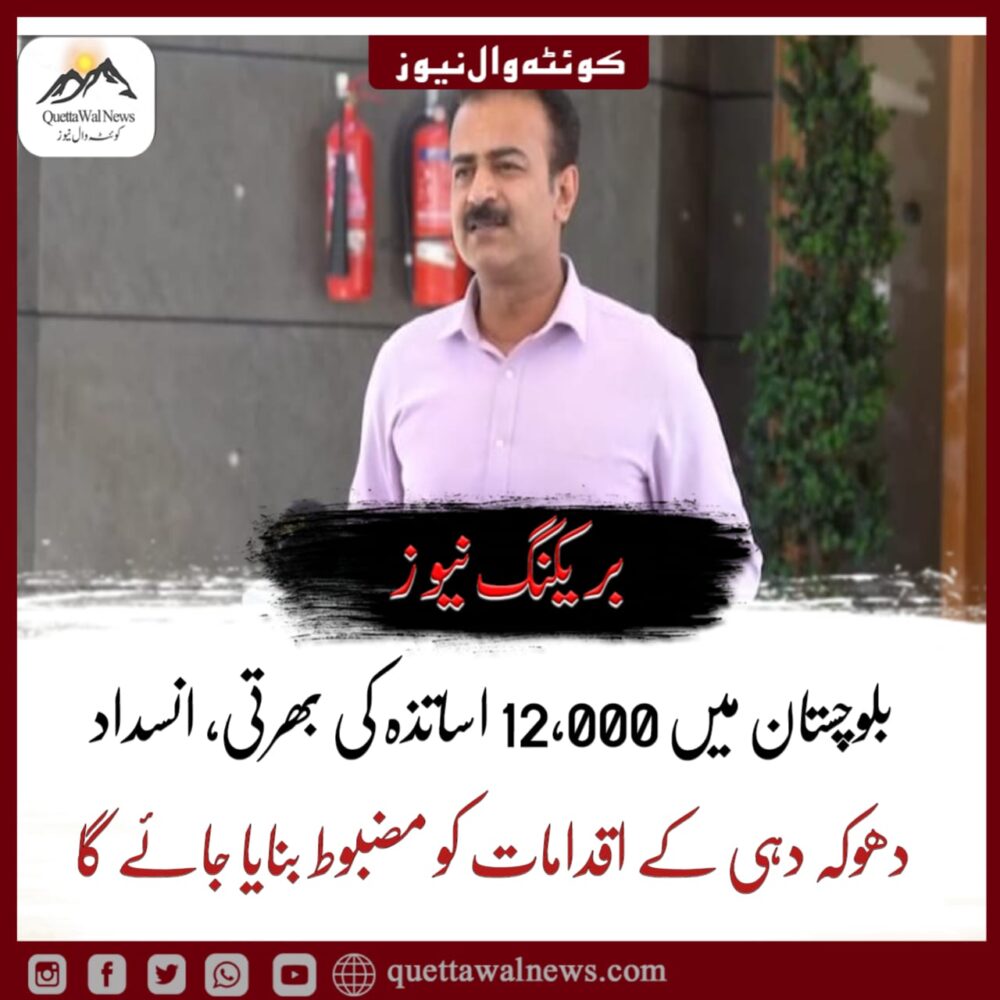 بلوچستان حکومت نے میرٹ کی بنیاد پر کنٹریکٹ پالیسی کے تحت دو مرحلوں میں 12,000اساتذہ بھرتی کرنے کے منصوبے کا اعلان کیا ہے جس کا مقصد صوبے بھر میں تعلیمی معیار کو بڑھانا ہے۔ حکومتی ترجمان شاہد رند نے جمعہ کو وزیر اعلیٰ سیکرٹریٹ میں پریس کانفرنس کے دوران یہ اپ ڈیٹس شیئر کیں۔ پہلے مرحلے میں سردار بہادر خان ویمن یونیورسٹی کے ٹیسٹ کے ذریعے شارٹ لسٹ کیے گئے 3,891 اساتذہ کو اگلے ہفتے تقرری کے آرڈر ملیں گے۔ دوسرے مرحلے میں 9000 اضافی اساتذہ کی بھرتی کی جائے گی۔ امیدواروں کا انتخاب ان کی تعلیمی اسناد کی بنیاد پر کیا جائے گا، شفافیت اور انصاف کو یقینی بنایا جائے گا۔ امتحان میں بدعنوانی سے نمٹنے کے لیے حکومت نے سخت اقدامات نافذ کیے ہیں۔ انتظامی افسران 430 امتحانی مراکز میں اساتذہ کو سپرنٹنڈنٹ کے طور پر تبدیل کریں گے، سبھی سی سی ٹی وی کیمروں سے لیس ہوں گے۔ فرنٹیئر کور (ایف سی) کے اہلکار اردگرد کی نگرانی کریں گے، کسی بھی مرکز کے 300 میٹر کے اندر پائے جانے والے غیر مجاز افراد کے خلاف ایف آئی آر درج کی جائے گی۔