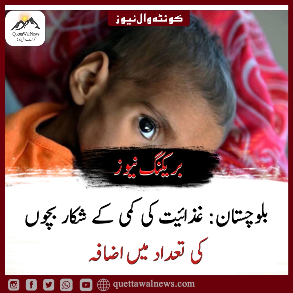 بلوچستان میں غذائی قلت کے مسئلے نے پورے صوبے کو اپنی لپیٹ میں لے رکھا ہے، اور نیوٹریشن سروے کے مطابق بلوچستان کے تمام 36 اضلاع میں بچوں کو غذائیت کی کمی کا سامنا ہے، جس کے نتیجے میں 49.6 فیصد بچے غذائی قلت کا شکار ہیں۔ یہ صورتحال نہ صرف بچوں کی صحت کے لیے سنگین خطرہ بن چکی ہے بلکہ ان کی مجموعی نشوونما اور جسمانی قوت مدافعت کو بھی متاثر کر رہی ہے۔