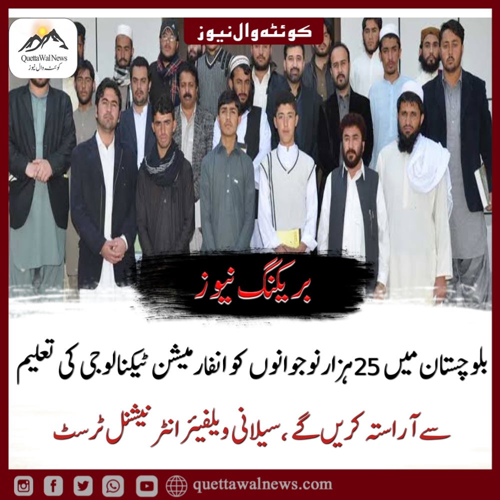 سیلانی ویلفیئر انٹر نیشنل ٹرسٹ کے صدر امین لاکھانی اور ٹرسٹی افضل چمدیہ نے کہا ہے کہ بلوچستان میں 25ہزار نوجوانوں کو انفارمیشن ٹیکنالوجی کی تعلیم سے آراستہ کریں گے ،اس مقصد کیلئے کوئٹہ میں آئی ٹی لیب کا افتتاح کیا جارہا ہے مناسب جگہ ملے تو ہم بلوچستان میں بھی میگا آئی ٹی سٹی بنائیں گے۔ان خیالات کا اظہار انہوں نے بدھ کے روز ایوان صنعت و تجارت کوئٹہ بلوچستان کے عہدیداران و ممبران کے ساتھ منعقدہ اجلاس کے شرکا سے خطاب کرتے ہوئے کیا۔اس سے قبل چیمبر آف کامرس اینڈ انڈسٹری کوئٹہ بلوچستان کے ایگزیکٹو ممبر و چیئرمین قائمہ کمیٹی برائے میونسپل سروسز سردار زین العابدین خلجی ،آغا فیصل ودیگر نے سیلانی ویلفیئر انٹر نیشنل ٹرسٹ کے صدر امین لاکھانی اور ان کے وفد میں شامل دیگر افراد کا چیمبر آف کامرس اینڈ انڈسٹری کوئٹہ بلوچستان آنے پر استقبال کرتے ہوئے کہا کہ سیلانی ویلفیئر انٹر نیشنل ٹرسٹ کی جانب سے نوجوانوں کو فنی تربیت دینے،چھوٹے کاروبار کی حوصلہ افزائی اور لاکھوں افراد کیلئے دسترخوان لگانے جیسی خدمات اپنی مثال آپ ہیں ،ہم بلوچستان میں نوجوانوں کو آئی ٹی تربیت کے آغاز کو بھی نیک شگون سمجھتے ہیں بلکہ اس بابت چیمبر آف کامرس اینڈ انڈسٹری کوئٹہ بلوچستان ٹرسٹ کے ساتھ ہر ممکن تعاون کیلئے بھی تیار ہے۔