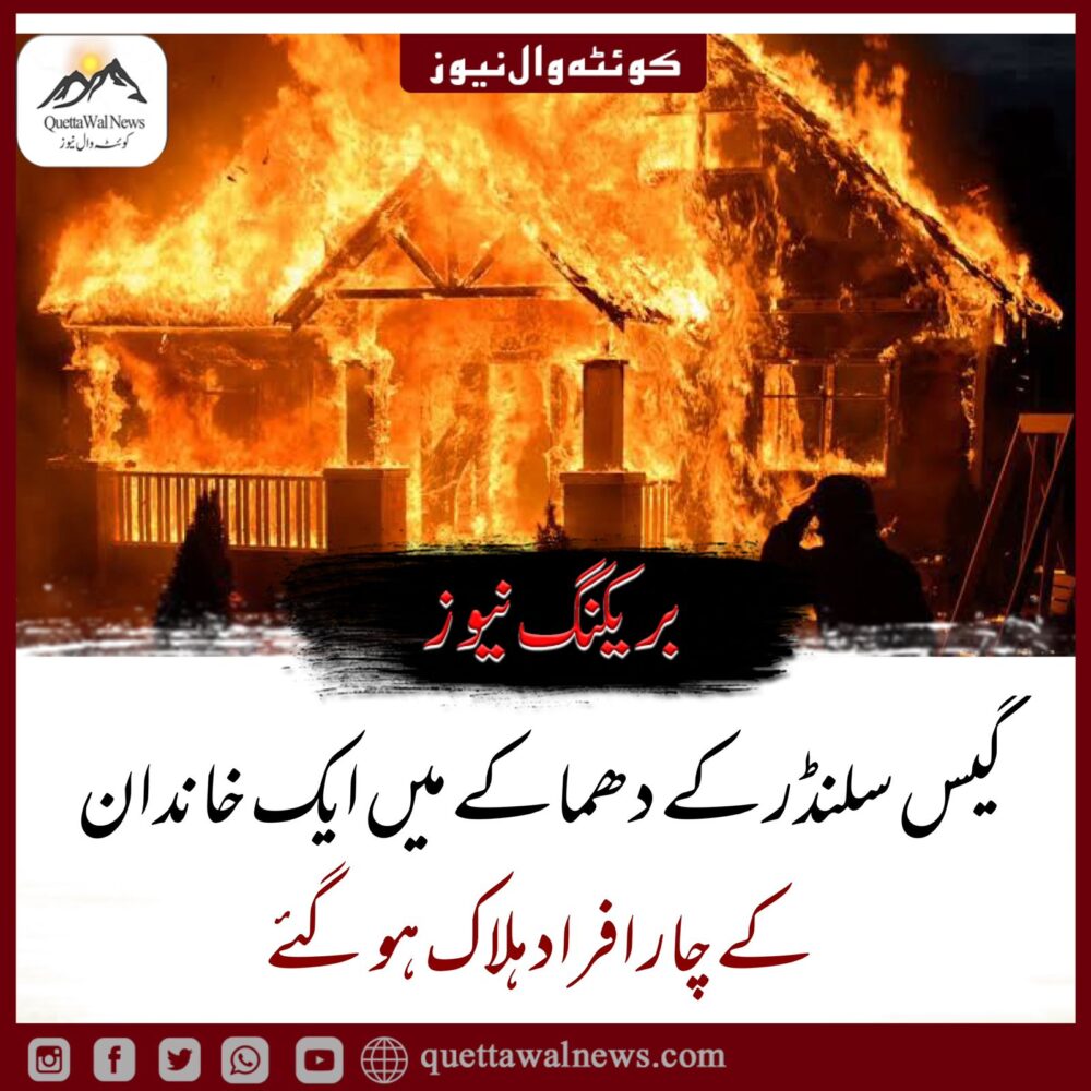 ریسکیو ذرائع کے مطابق، بوریوالہ کے علاقے عزیز آباد میں ایک گھر میں گیس سلنڈر پھٹنے کیوجہ سے آگ بھڑک اٹھی۔ اس کے نتیجے میں 24 سالہ دانش رضا اور ان کا 2 سالہ بیٹا ایان عباس موقع پر ہی ہلاک ہو گئے۔ ذرائع نے بتایا کہ دانش کی بیوی، 22 سالہ زکیا عباس، اور ان کا 6 ماہ کا بیٹا فرحان آگ سے زخمی ہو گئے۔ ریسکیو ٹیمیں موقع پر پہنچ گئیں اور لاشوں اور زخمیوں کو ہسپتال منتقل کیا۔ تاہم، کچھ دیر بعد 6 ماہ کا بچہ فرحان اور اس کی ماں زکیا بھی زخموں کی تاب نہ لاتے ہوئے چل بسے۔ ریسکیو ذرائع کے مطابق کمرے میں گیس سلنڈر سے لیکج ہو رہی تھی جس کی وجہ سے پردے میں آگ لگ گئی جو تیزی سے پورے کمرے میں پھیل گئی۔
