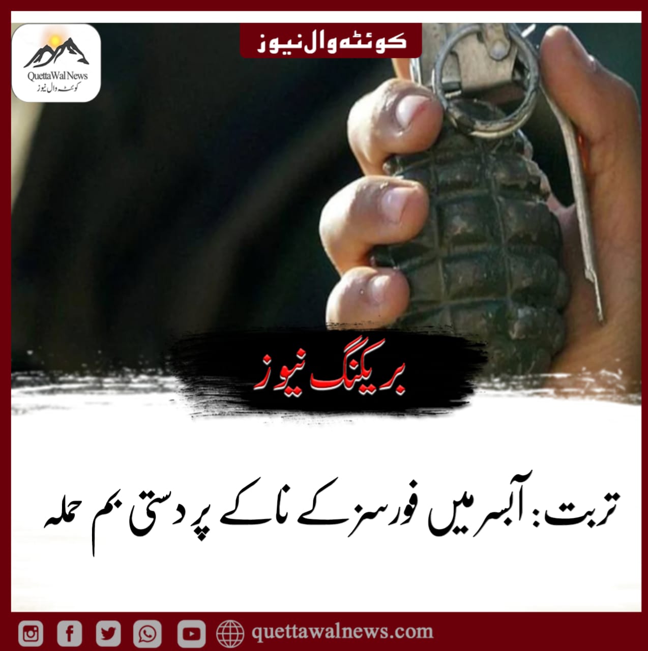 بلوچستان کے ضلع کیچ کے مرکزی شہر تربت میں جمعرات کی شام سیکیورٹی فورسز کو ایک اور حملے کا سامنا کرنا پڑا۔ یہ واقعہ آپسر کے علاقے میں پیش آیا جہاں اسٹار پلس مارکیٹ کے قریب قائم پاکستانی فورسز کے ناکے پر دستی بم سے حملہ کیا گیا۔