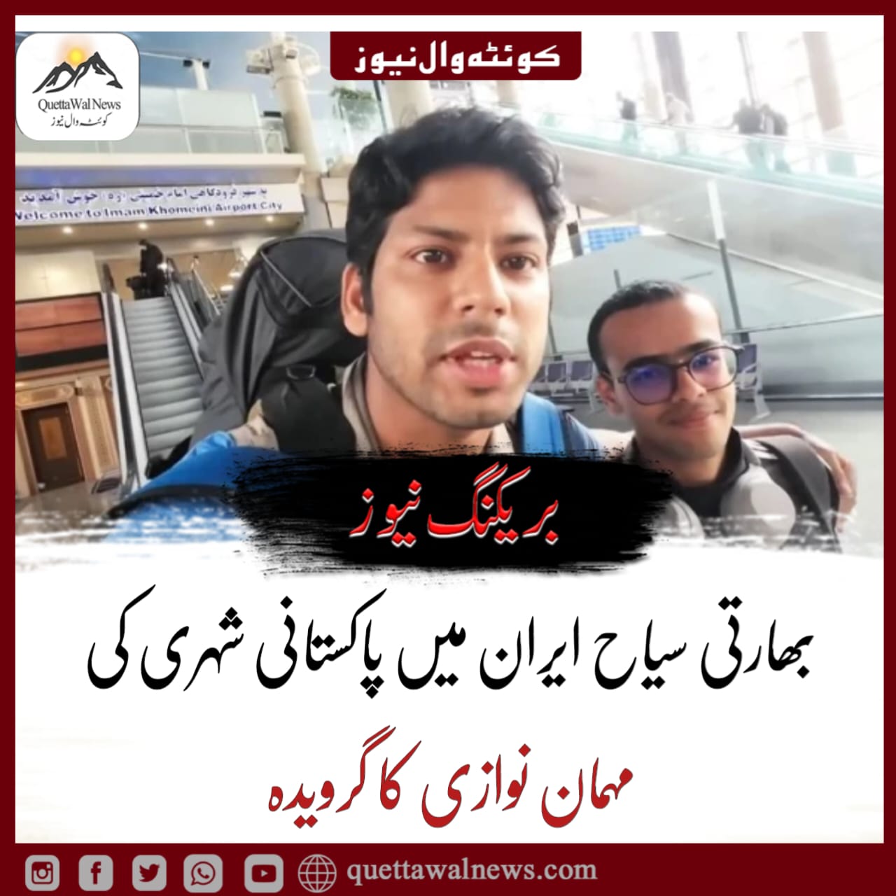 ایسے میں تہران ہوائی اڈے پر اس کی ملاقات ایران میں مقیم ایک پاکستانی طالب علم حسین سے ہوئی جس نے بھارتی ولاگر کی بہت مدد کی۔