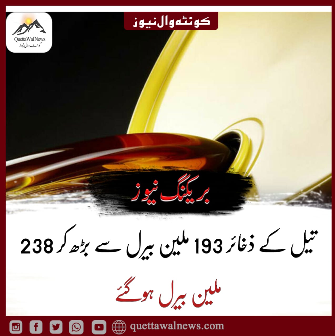 تیل کے ذخائر میں نمایاں اضافہ دیکھنے میں آیا، جو 193 ملین بیرل سے بڑھ کر 238 ملین بیرل تک پہنچ گئے ہیں۔