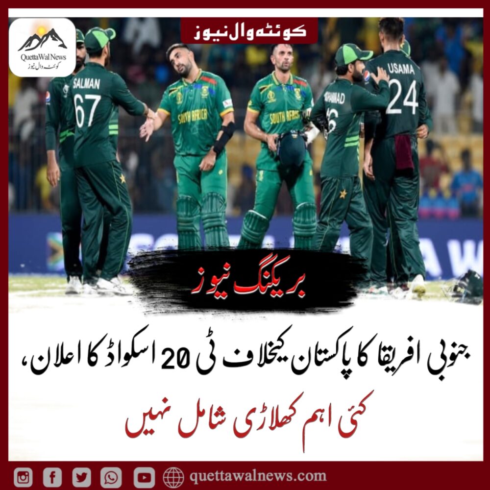 جنوبی افریقا نے پاکستان کے خلاف ٹی ٹوئنٹی سیریز کے لیے اسکواڈ کا اعلان کردیا۔