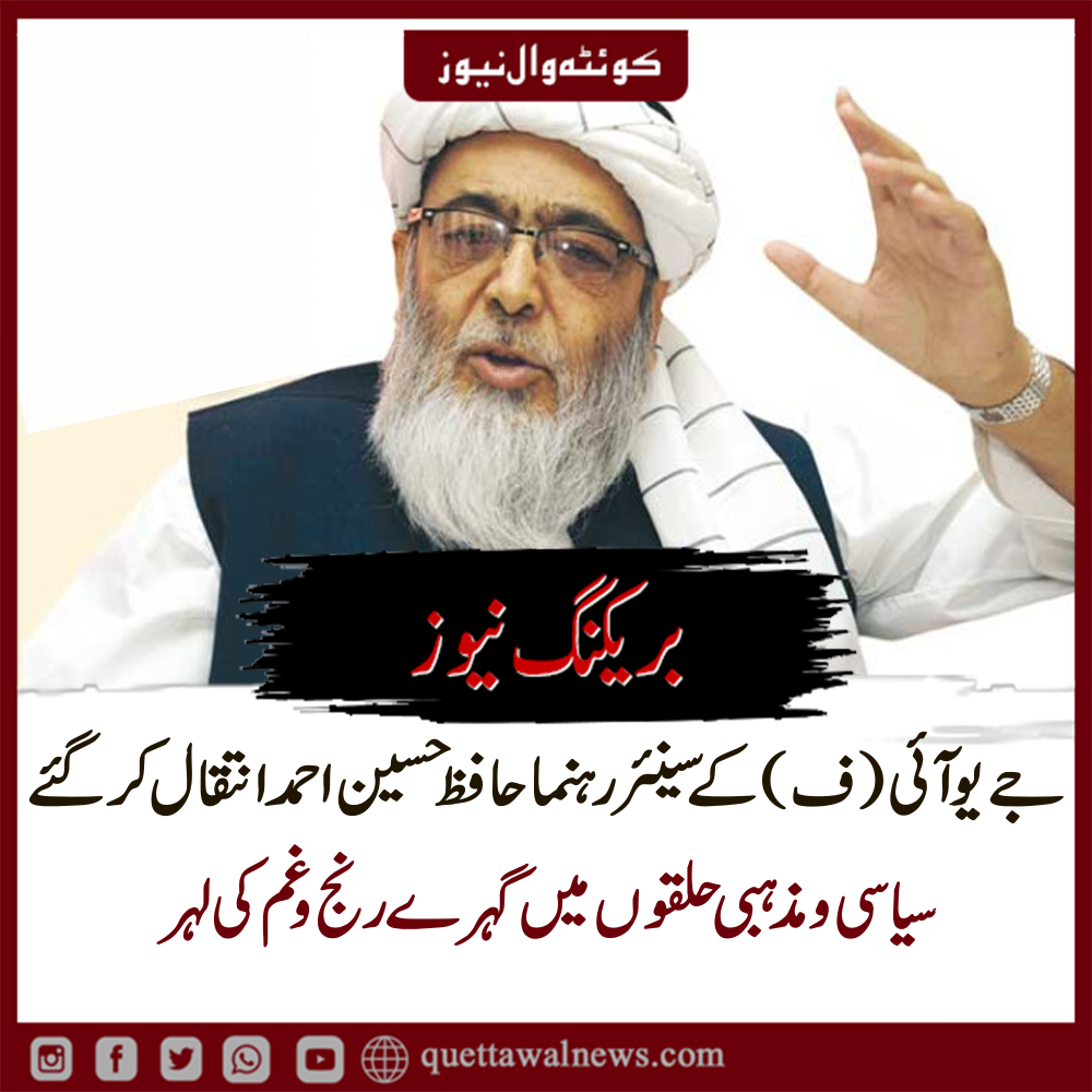 معروف عالم دین اور جمیعت علمائے اسلام (ف) کے سینئر رہنما حافظ حسین احمد طویل علالت کے بعد کوئٹہ میں انتقال کر گئے۔ ان کے بیٹے منیر احمد کے مطابق وہ کافی عرصے سے گردوں کے مرض میں مبتلا تھے۔ جے یو آئی (ف) نے بھی ان کے انتقال کی تصدیق کرتے ہوئے اظہار تعزیت کیا ہے، جبکہ نماز جنازہ کی تفصیلات بعد میں جاری کی جائیں گی۔