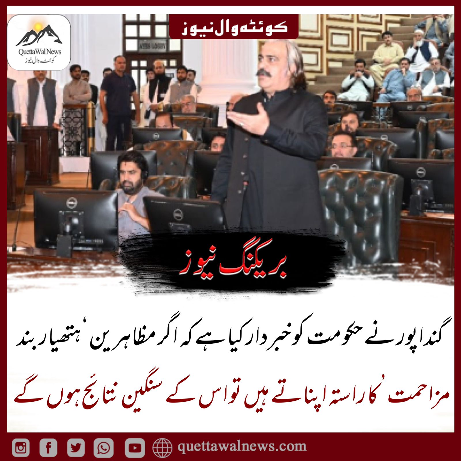 جمعہ کو کے پی اسمبلی کے سیشن سے قبل ایک تقریر میں، علی امین گنداپور نے ڈی چوک پر حالیہ احتجاج کے دوران معصوم شہریوں پر ہونے والی بربریت کی مذمت کی اور کہا کہ اس کے ذمہ داروں کو نتائج کا سامنا کرنا پڑے گا۔