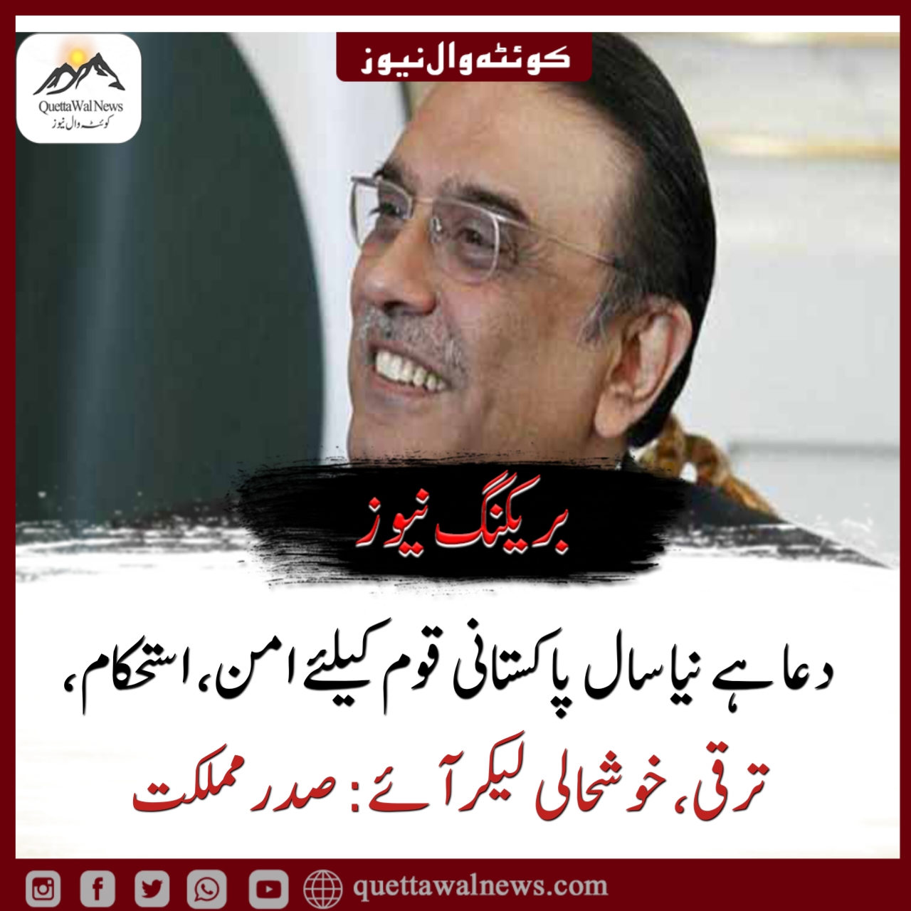 صدر مملکت نے مزید کہا کہ نیا سال عوامی خدمت، امن و استحکام، اور قومی ترقی کے لیے محنت اور عزم کے ساتھ کام کرنے کا سال ہونا چاہیے۔ انہوں نے عوام کو تلقین کی کہ وہ اپنی ذمہ داریوں کو احسن طریقے سے نبھائیں اور ملک کو درپیش چیلنجز سے نکلنے کے لیے ایک مضبوط اور متحد قوم کے طور پر کام کریں۔