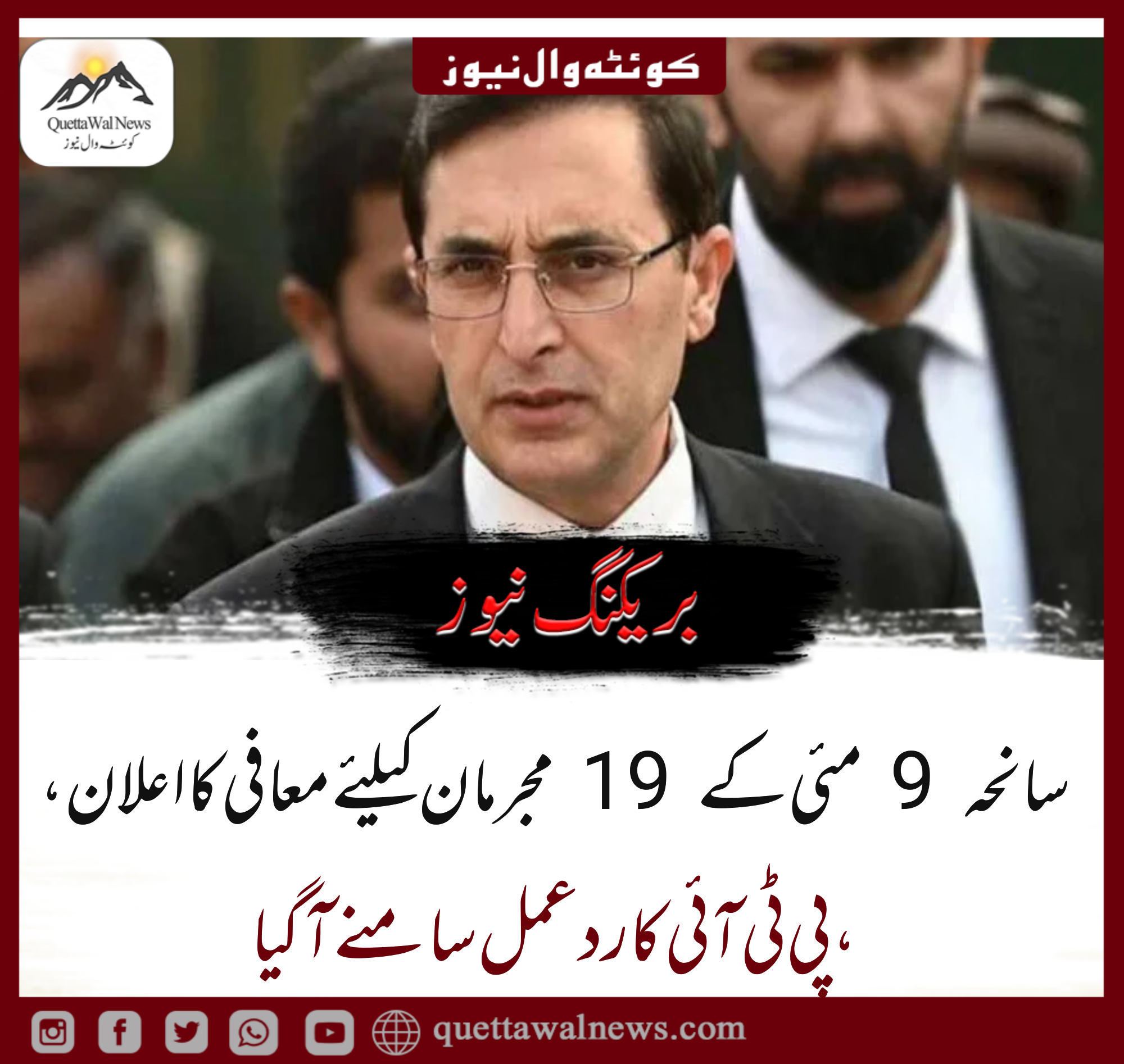 سانحہ 9 مئی کے 19 مجرمان کی سزائیں معاف کرنے کے اعلان پر پاکستان تحریک انصاف ( پی ٹی آئی) کا ردعمل سامنے آگیا۔
