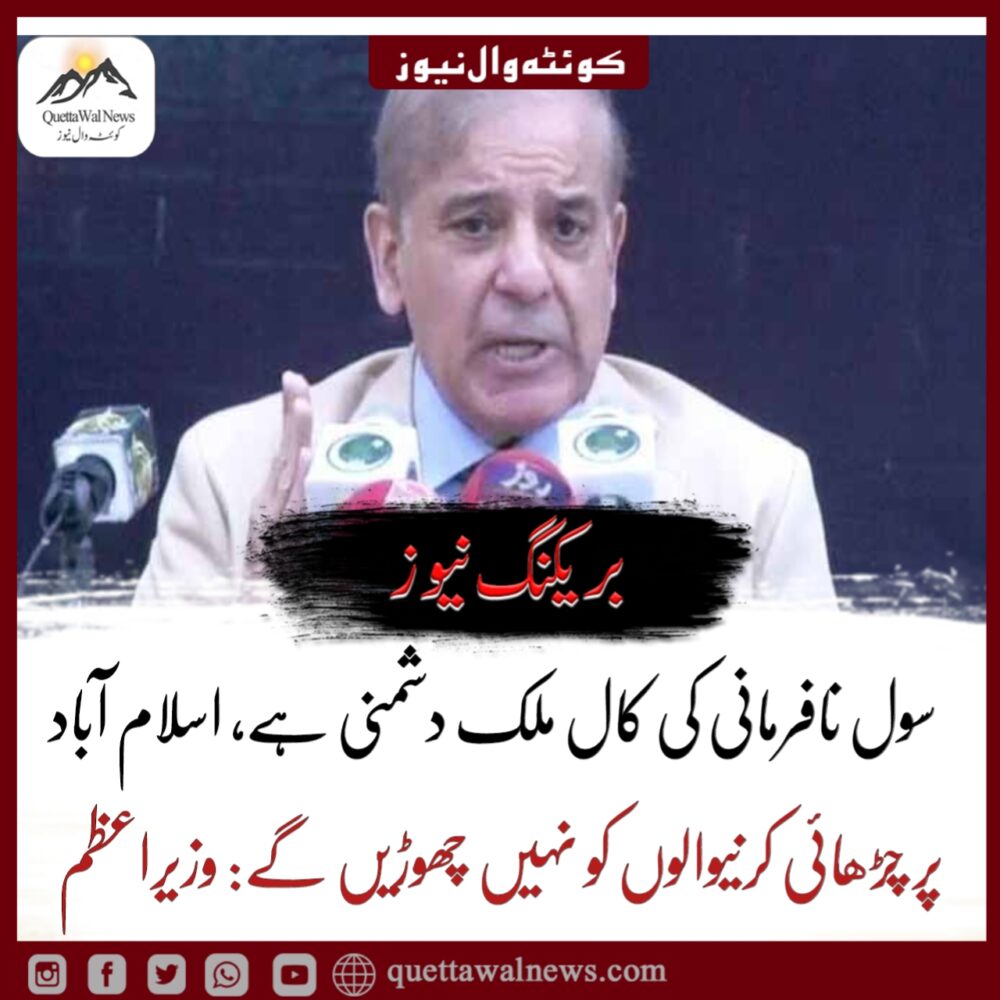 اسلام آباد: وزیر اعظم شہباز شریف نے سول نافرمانی کی کال کو ملک دشمنی قرار دے دیا۔