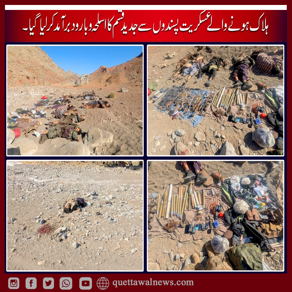ترجمان پاک فوج نے اپنے بیان میں کہا کہ خوارج کے قبضے سے اسلحہ اور گولہ بارود بھی برآمد ہوا، جو سیکیورٹی فورسز کے خلاف دہشت گردی کی کارروائیوں کے ساتھ ساتھ معصوم شہریوں کی ٹارگٹ کلنگ میں بھی سرگرم رہے۔