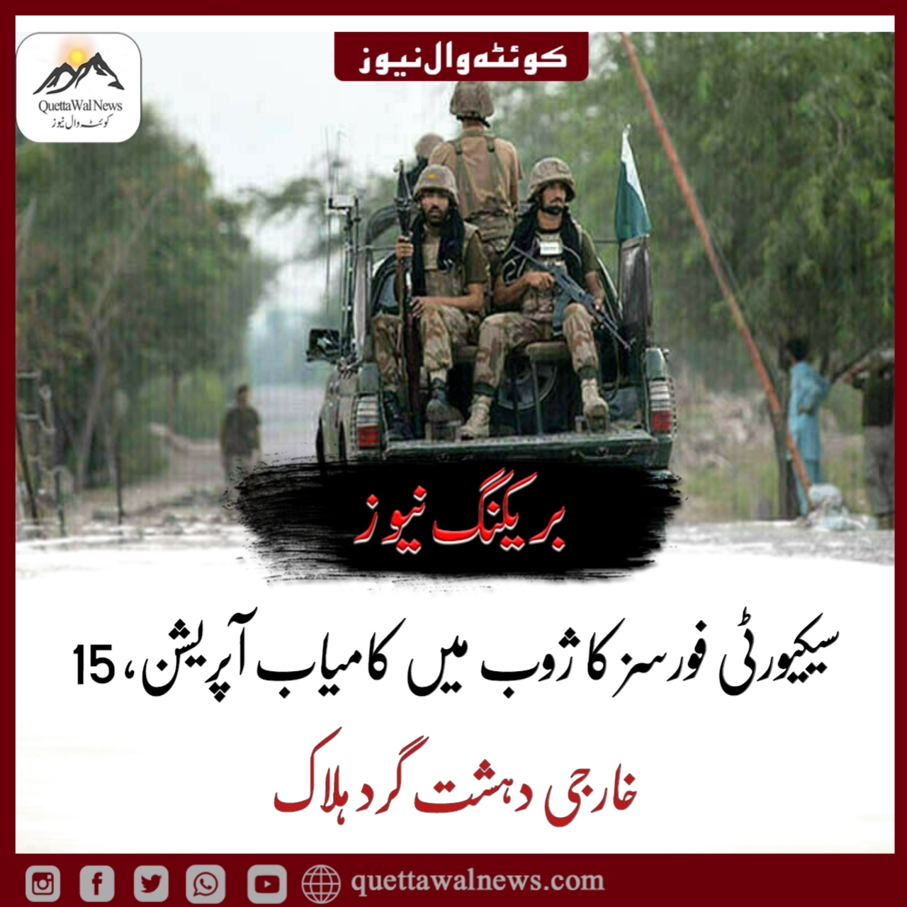 سیکیورٹی فورسز نے بلوچستان کے ضلع ژوب میں کامیاب آپریشن کرتے ہوئے 15 خارجی دہشت گردوں کو ہلاک کردیا۔