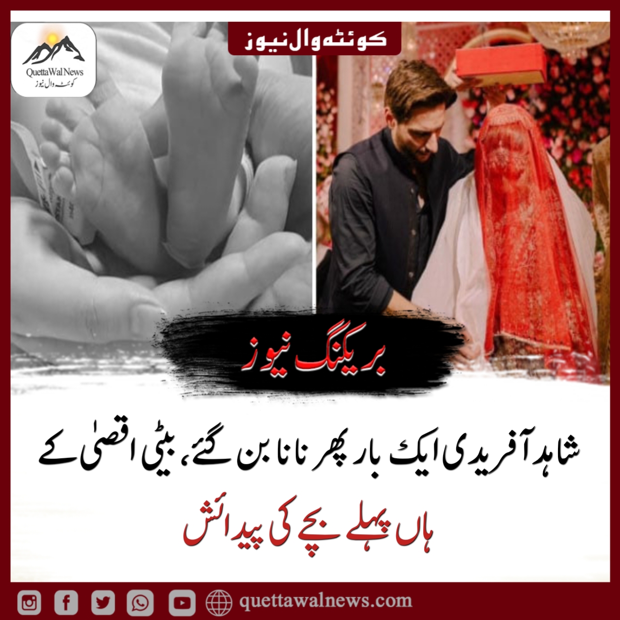 پاکستان کرکٹ ٹیم کے سابق کپتان شاہد خان آفریدی کی بڑی بیٹی اقصیٰ کے ہاں پہلے بچے کی پیدائش ہوئی ہے۔