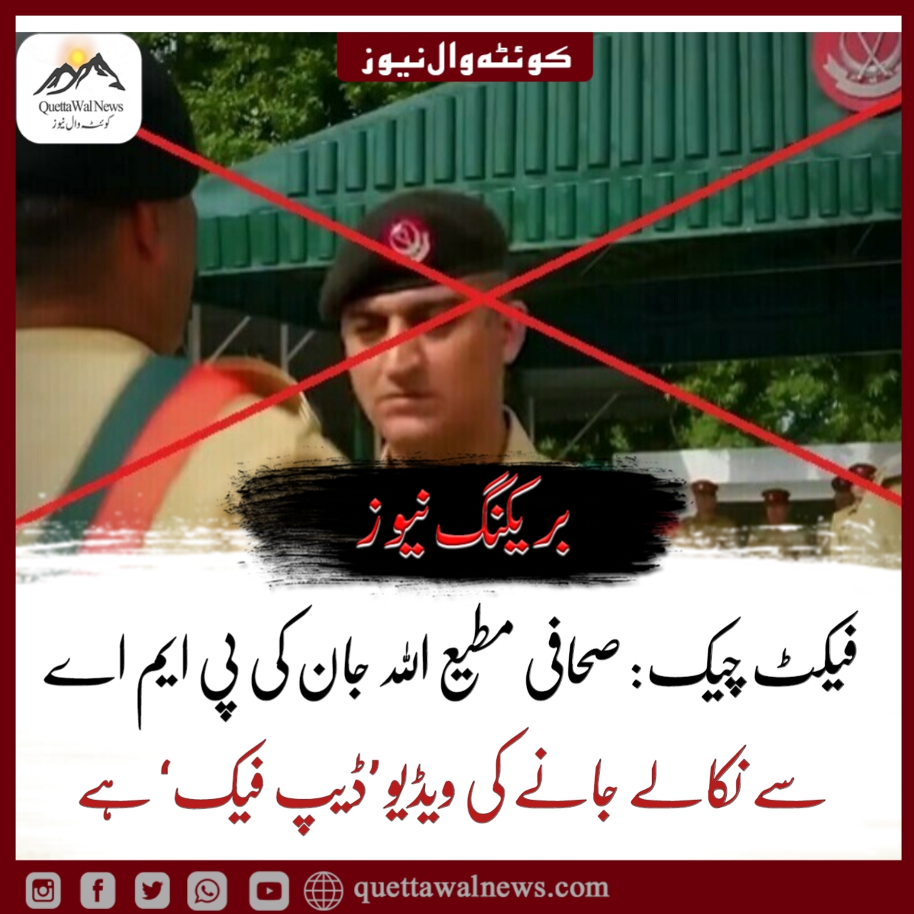نومبر کو سماجی رابطے کی ویب سائٹ ’ایکس‘ پر کئی صارفین نے صحافی مطیع اللہ جان کی ایک ویڈیو شیئر کرتے ہوئے انہیں تنقید کا نشانہ بنایا اور یہ دعویٰ کیا کہ انہیں فوج سے نامناسب رویے کی وجہ سے نکال دیا گیا تھا تاہم یہ ویڈیو مصنوعی ذہانت کے ذریعے ایڈٹ کی گئی ہے۔