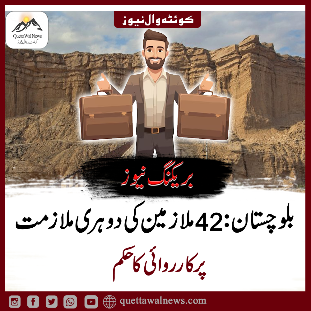 کوئٹہ، 3 جنوری 2025: بلوچستان کے مختلف اضلاع میں محکمہ تعلیم کے ملازمین کی جانب سے دوہری ملازمت کا انکشاف ہوا ہے۔ نوٹیفکیشن کے مطابق 42 افسران اور ملازمین محکمہ تعلیم کے ساتھ دیگر محکموں میں بھی خدمات انجام دے رہے ہیں۔