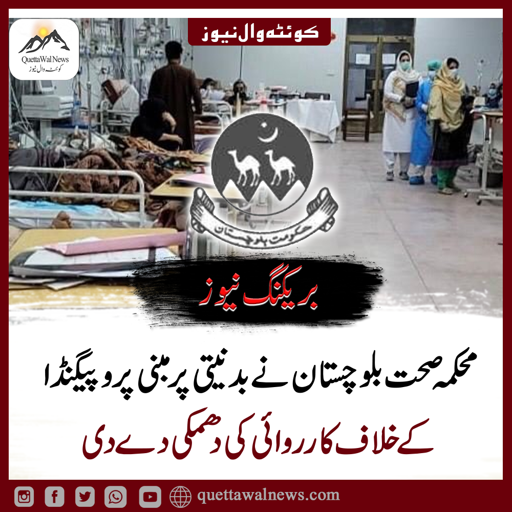 کوئٹہ: محکمہ صحت بلوچستان نے تمام ڈسٹرکٹ ہیلتھ آفیسرز اور ڈی ڈی اوز کو ہدایت جاری کی ہے کہ وہ محکمہ کے خلاف کسی بھی بدنیتی پر مبنی پروپیگنڈا کو برداشت نہ کریں۔ محکمہ صحت نے واضح کیا ہے کہ ہائی کورٹ کی ہدایات کے مطابق خلاف ورزی کرنے والوں کے خلاف سخت کارروائی کی جائے گی۔ اعلامیہ میں مزید کہا گیا کہ ملوث عناصر کو فوری طور پر ایف آئی اے کی سائبر کرائم ونگ کے حوالے کیا جائے گا۔