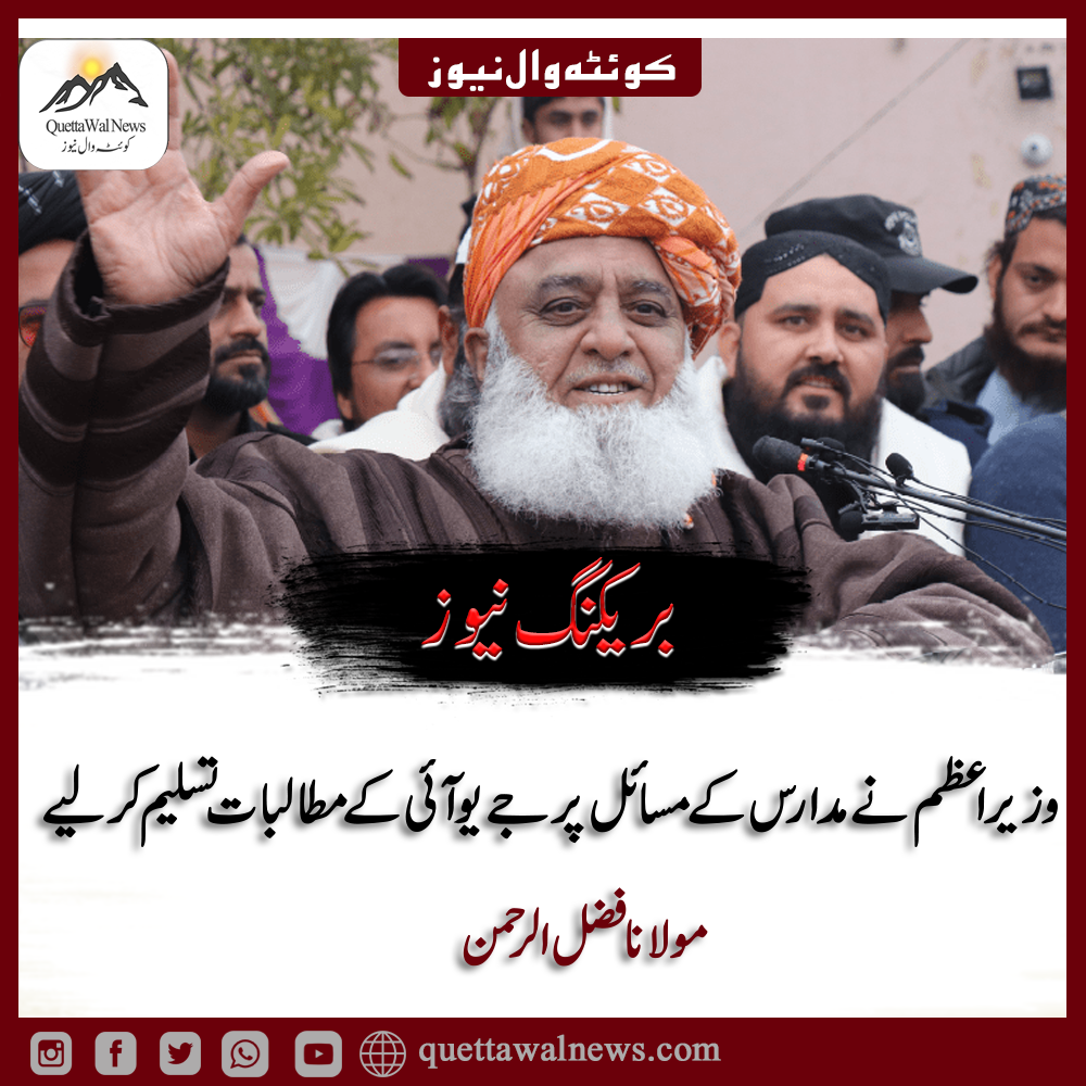 جے یو آئی (ف) کے سربراہ مولانا فضل الرحمن نے کہا ہے کہ وزیر اعظم شہباز شریف نے مدارس کے مسائل پر ان کے مطالبات کو مثبت انداز میں قبول کیا ہے۔