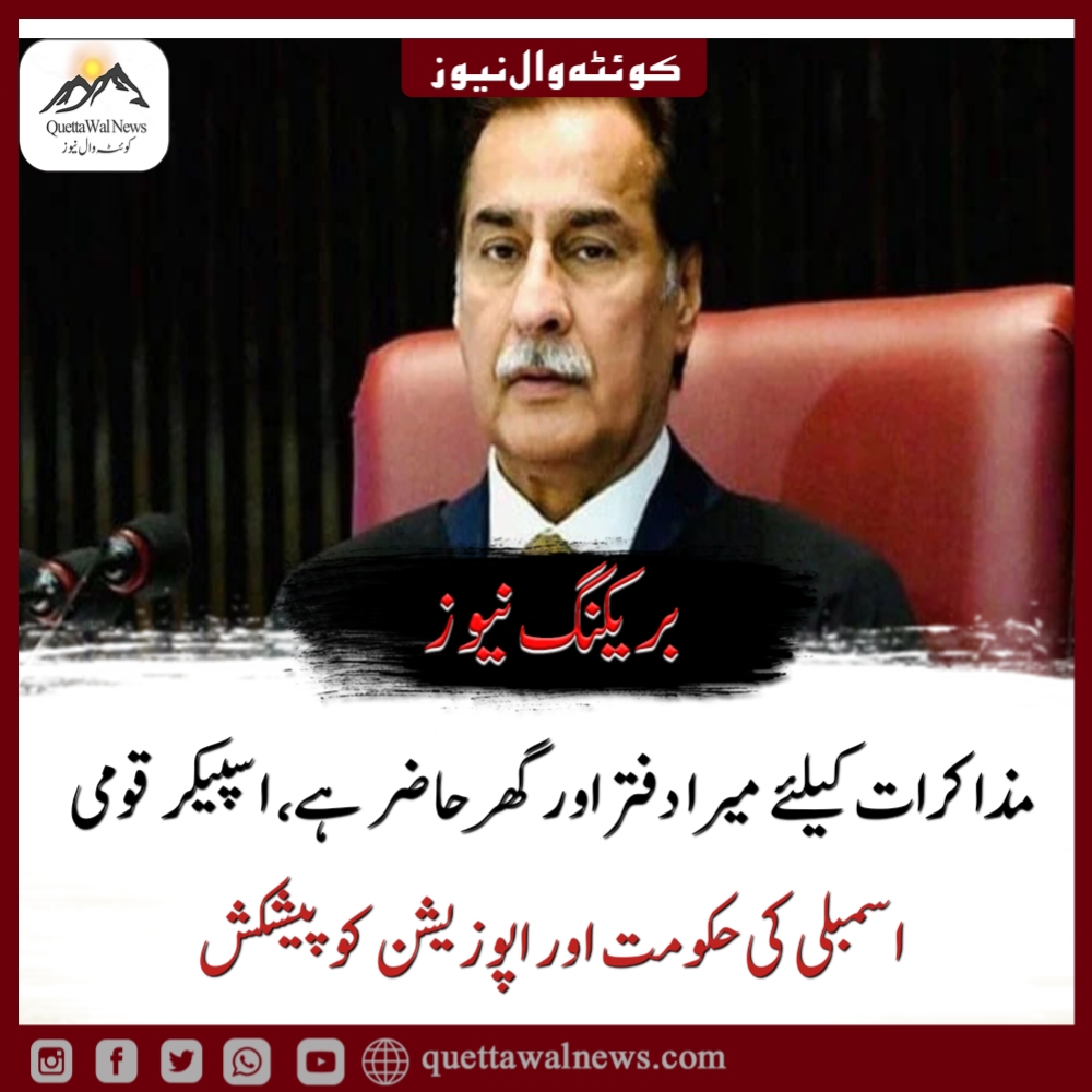 اسلام آباد: اسپیکر قومی اسمبلی ایاز صادق نے حکومت اور اپوزیشن کو مذاکرات میں سہولت فراہم کرنے کی پیشکش کردی۔