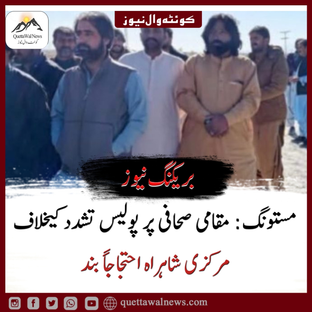 ضلع مستونگ میں مقامی صحافی نیاز بلوچ پر پولیس تشدد کے خلاف شدید احتجاج کیا جا رہا ہے۔ آل بلوچستان بے روزگار یونین اور زمیاد یونین نے پولیس فورس کی جانب سے چھوٹی گاڑیوں سے زبردستی بھتہ وصولی کے خلاف صحافی کی نشاندہی پر کیے گئے تشدد کے خلاف کوئٹہ، کراچی مرکزی شاہراہ کو مقامی ہوٹل کے مقام پر بند کر دیا ہے۔