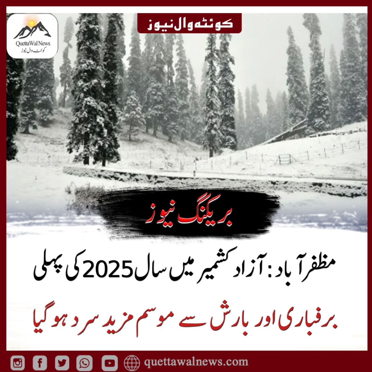 آزاد کشمیر کے مختلف علاقوں میں سال نو کی پہلی برف باری اور بارش کے بعد موسم شدید سرد ہوگیا ہے۔ وادی نیلم کے بالائی علاقوں جیسے گریس، سرگن، اور جاگراں میں رات بھر ہلکی برفباری کا سلسلہ جاری رہا، جب کہ زیریں علاقوں میں بارش کے باعث سردی کی شدت میں مزید اضافہ ہوا۔