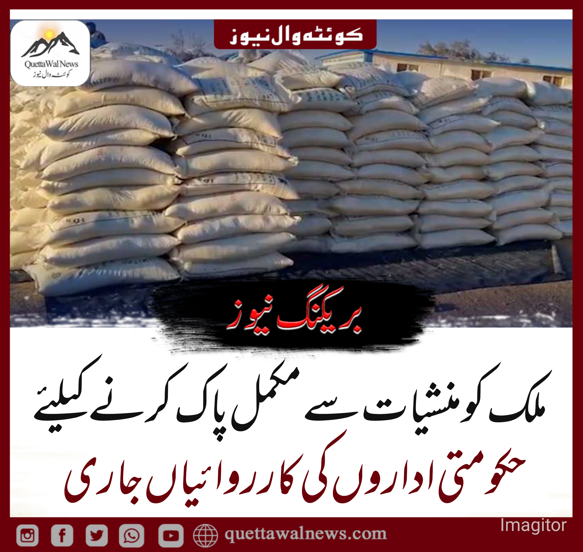 ملک کو منشیات سے مکمل پاک کرنے کیلئے حکومتی اداروں کی کاروائیاں جاری ہیں،ستمبر 2023 سے اب تک ملک بھر سے 1062.894 میٹرک ٹن منشیات ضبط کی۔