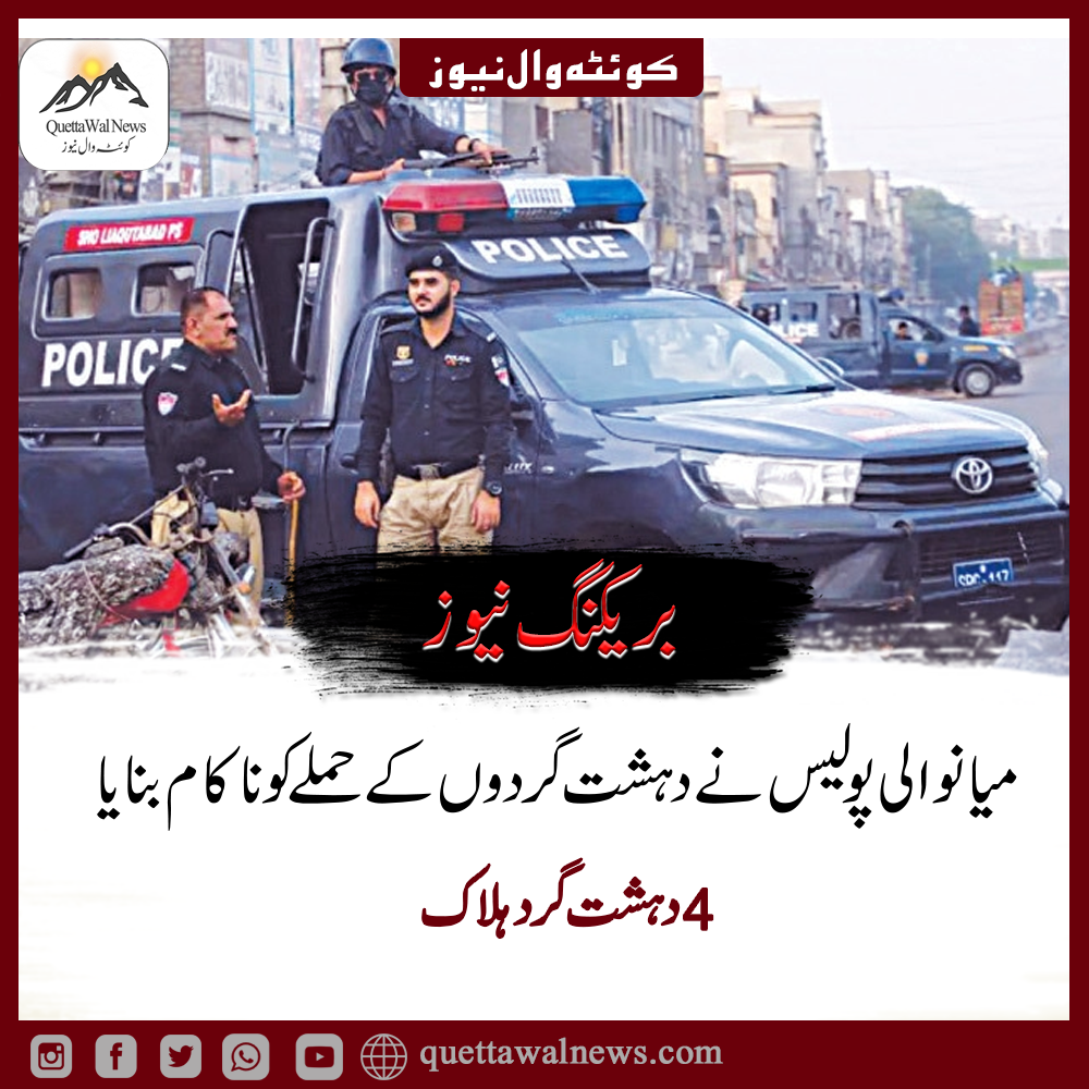 میانوالی پولیس نے دہشت گردوں کے حملے کو ناکام بناتے ہوئے 4 دہشت گردوں کو ہلاک کر دیا