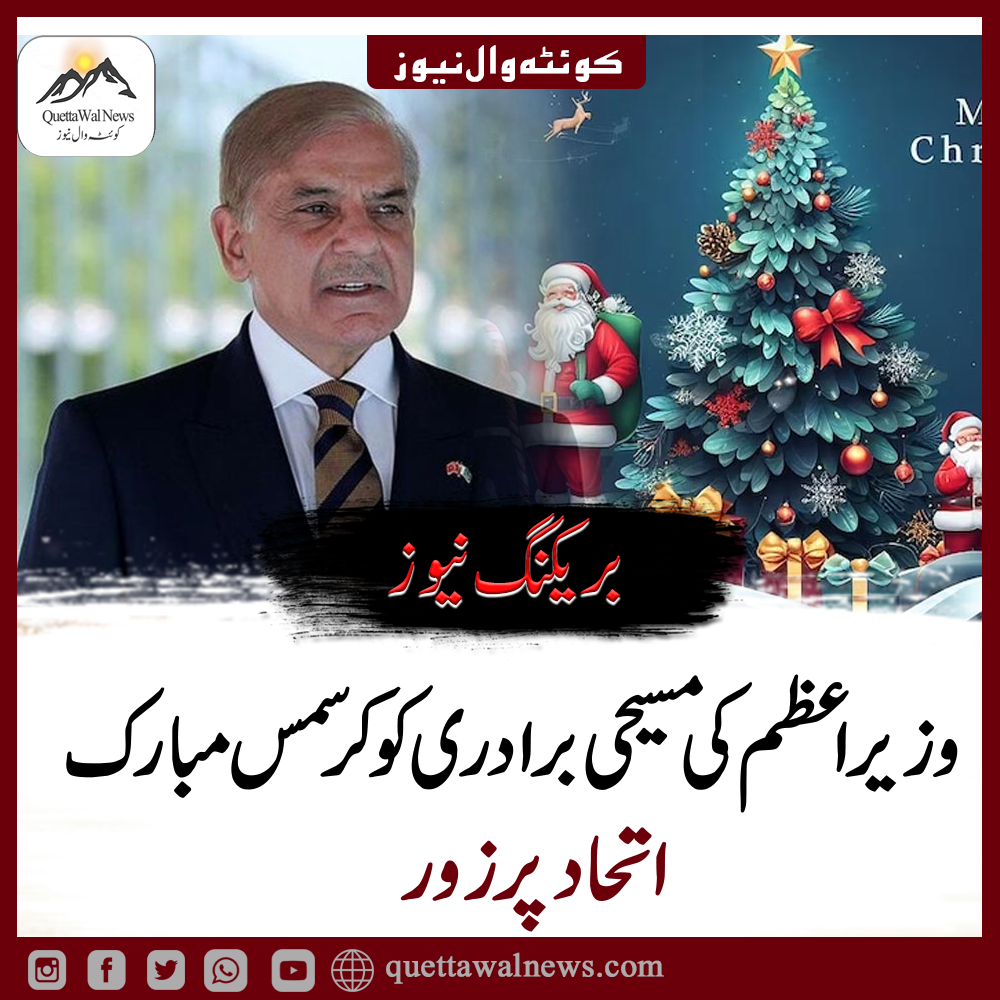 وزیراعظم شہباز شریف نے مسیحی برادری کو کرسمس کی مبارکباد پیش کرتے ہوئے اتحاد، رواداری، اور باہمی احترام کی اہمیت پر زور دیا۔ وزیراعظم ہاؤس میں کرسمس کی خصوصی تقریب سے خطاب کرتے ہوئے انہوں نے اقلیتوں کی فلاح و بہبود اور بین المذاہب ہم آہنگی کے لیے اپنی حکومت کے عزم کا اعادہ کیا۔