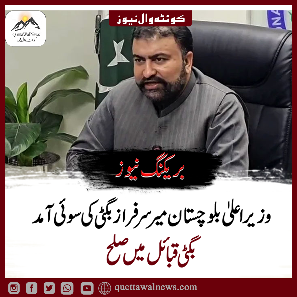وزیراعلیٰ بلوچستان میر سرفراز بگٹی نے سوئی میں بگٹی قبائل کے امن جرگے میں شرکت کی اور مسوری اور کلپر ہوتاکانی کے درمیان 15 سالوں سے جاری خون ریز تنازعے کو حل کروا دیا۔