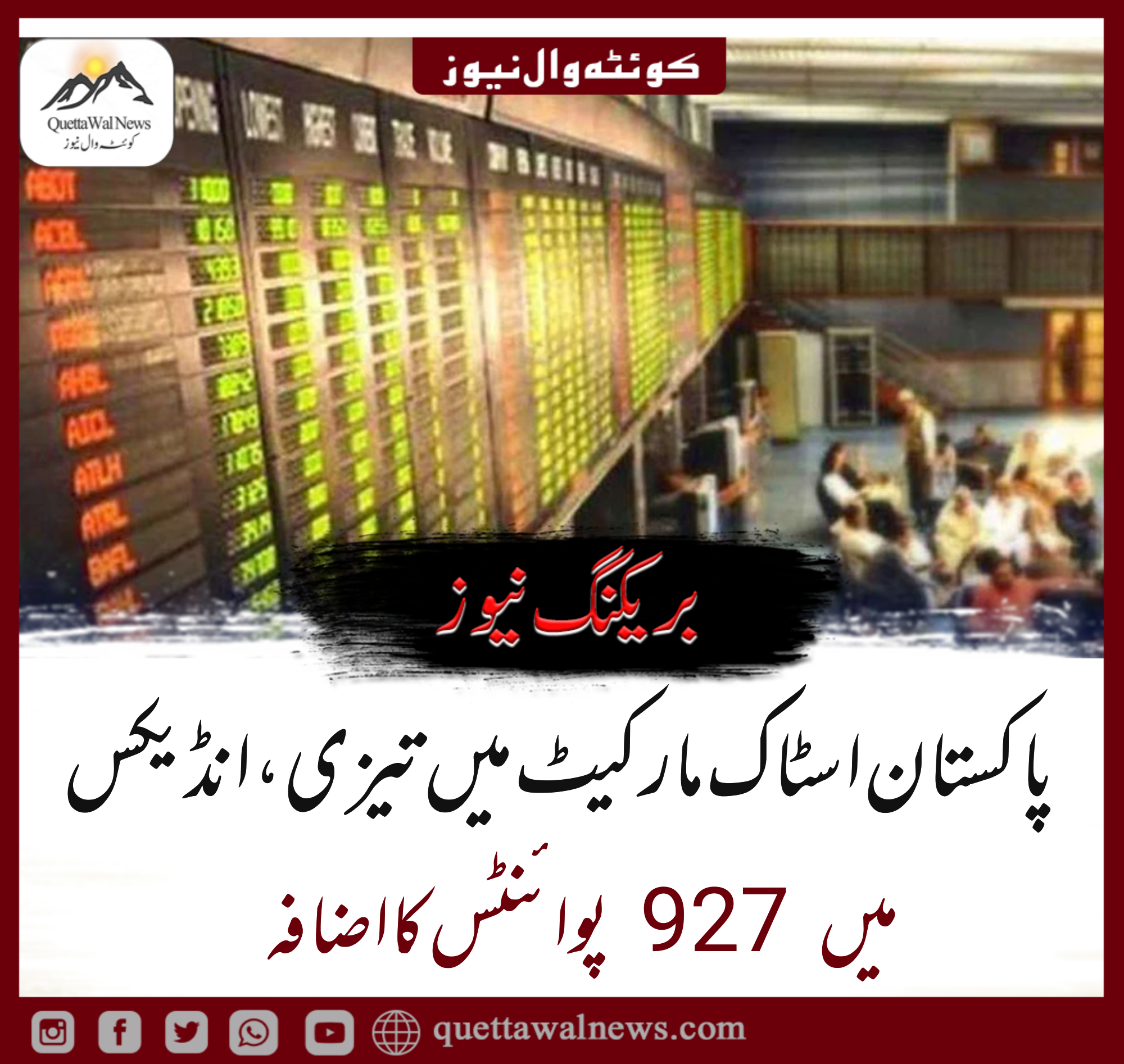 پاکستان اسٹاک ایکسچینج (پی ایس ایکس) میں مندی کا زور ٹوٹ گیا، بینچ مارک کے ایس ای 100 انڈیکس میں 927 سے زائد پوائنٹس کا اضافہ ریکارڈ کیا گیا۔