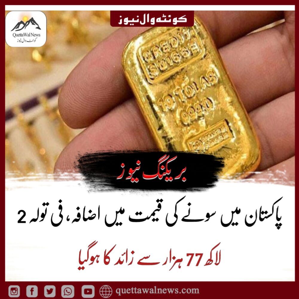 آل پاکستان جیمز اینڈ جیولر ایسوسی ایشن کے مطابق ملک بھر میں سونے کی فی تولہ قیمت میں ایک ہزار روپے کا اضافہ ہوا ہے جس کے بعد فی تولہ سونے کی قیمت 2 لاکھ 77 ہزار 400 روپے ہوگئی ہے۔