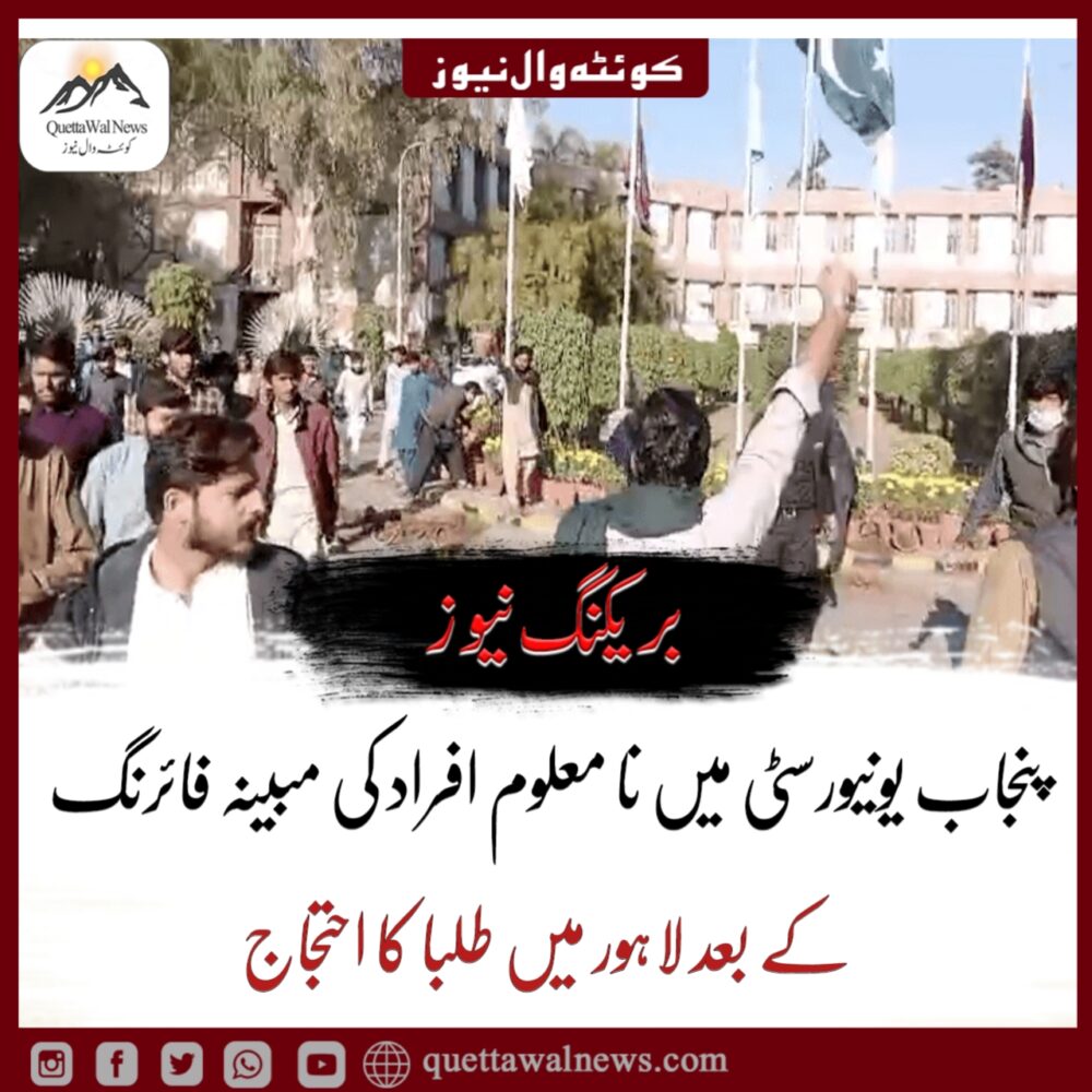 لاہور میں واقع پنجاب یونیورسٹی میں مبینہ طور پر نامعلوم افراد کی فائرنگ کے بعد طلبا نے احتجاج کرتے ہوئے انڈرپاس کیمپس اور کینال روڈ کو ٹریفک کے لیے بند کردیا۔