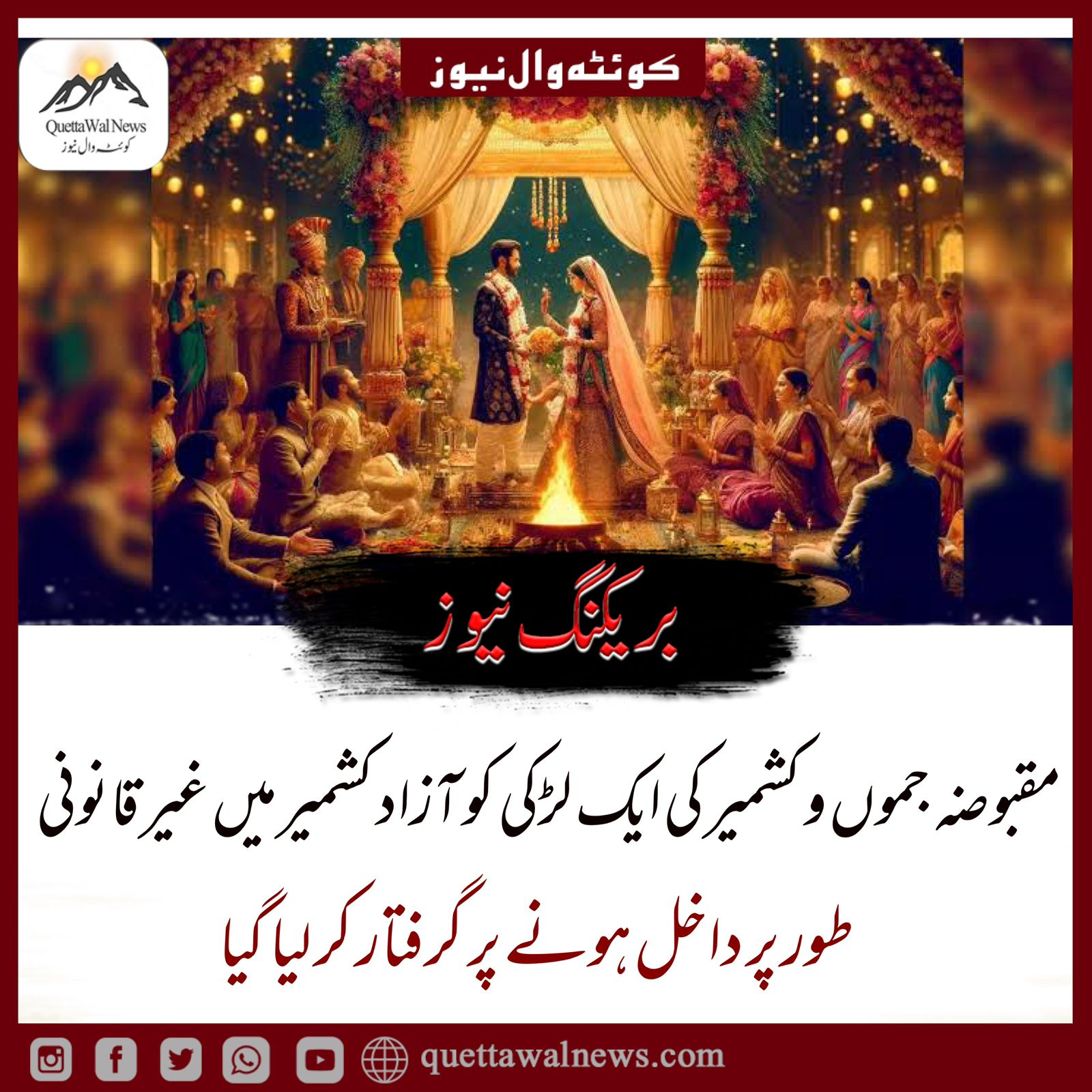 فارورڈ کہوٹہ پولیس نے مقبوضہ جموں و کشمیر (IIOJK) سے تعلق رکھنے والی ایک لڑکی کو آزاد جموں و کشمیر (AJK) میں غیر قانونی طور پر اور بغیر ویزا داخل ہونے پر گرفتار کر لیا۔