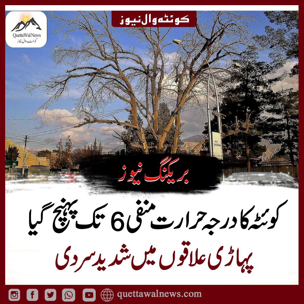 پہاڑی علاقوں میں شدید سردی، کوئٹہ کا درجہ حرارت منفی 6 تک پہنچ گیا