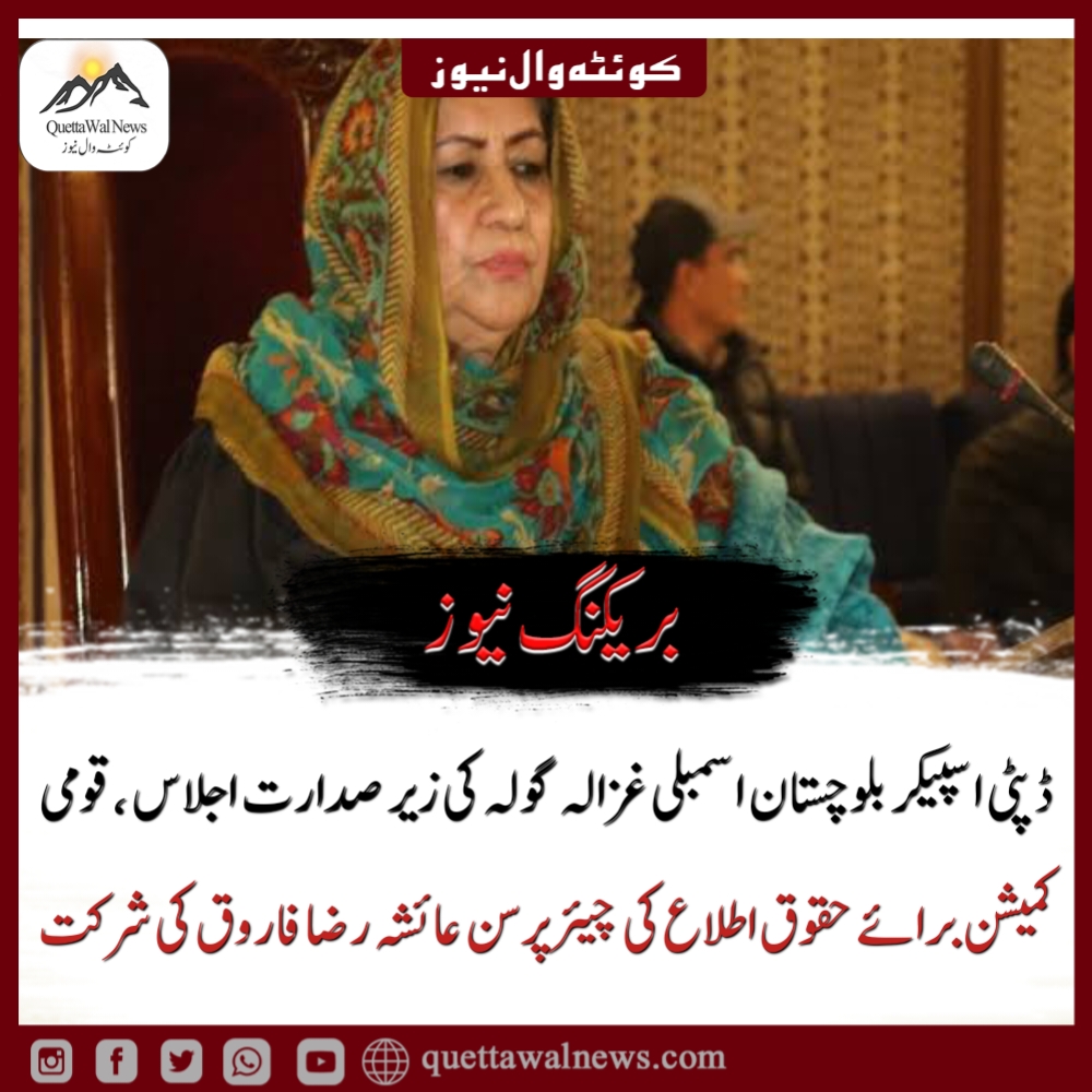 ڈپٹی اسپیکر بلوچستان اسمبلی غزالا گو لہ کی زیر صدارت ایک اہم اجلاس منعقد ہوا، جس میں قومی کمیشن برائے حقوقِ اطفال (NCRC) کی چیئرپرسن عائشہ رضا فاروق نے شرکت کی۔ اجلاس میں کم عمری کی شادی کے موضوع پر تفصیلی تبادلہ خیال کیا گیا۔ اس موقع پر اراکین اسمبلی ہادیہ نواز بہرانی، کلثوم نیاز بلوچ اور مختلف تنظیموں کے نمائندے بھی موجود تھے۔اجلاس میں بلوچستان میں بچوں کی شادی کی روک تھام کے لیے پیش کیے گئے بل کے مسودے پر تفصیلی غور کیا گیا۔