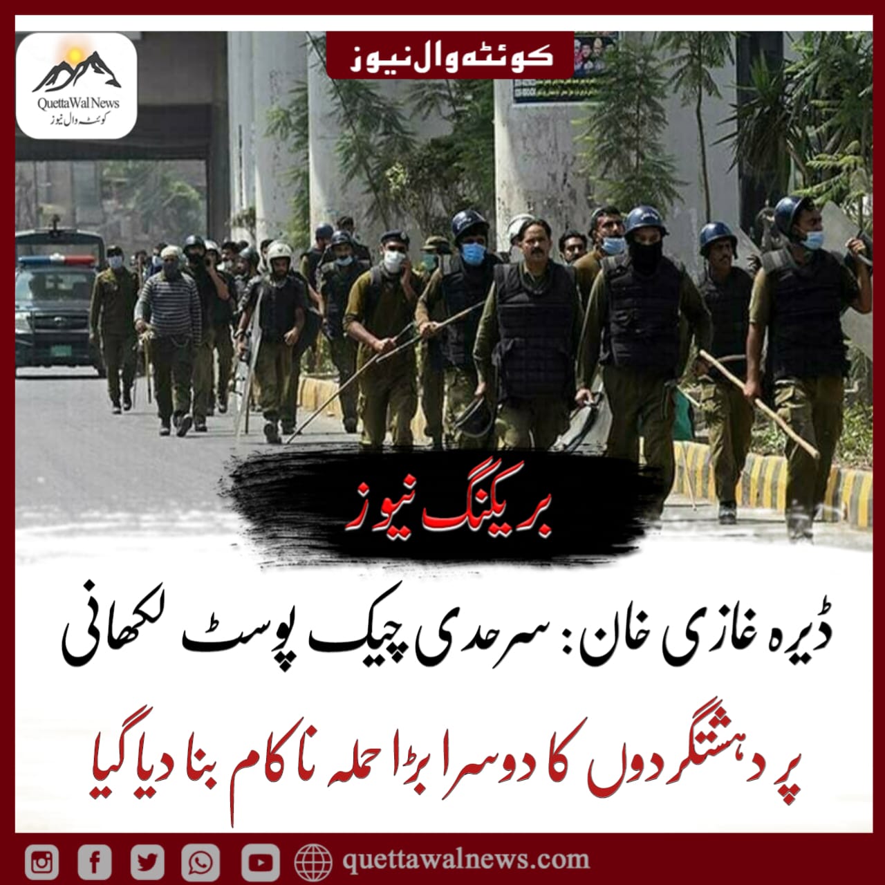 ترجمان پنجاب پولیس کا کہنا تھا کہ ڈی جی خان تھانہ وہوا کی سرحدی چوکی پر خارجی دہشت گردوں کا حملہ پسپا کیا گیا، 20 سے 25 دہشت گرد بھاری اسلحے سے شدید فائرنگ کرتے ہوئے حملہ آور ہوئے۔