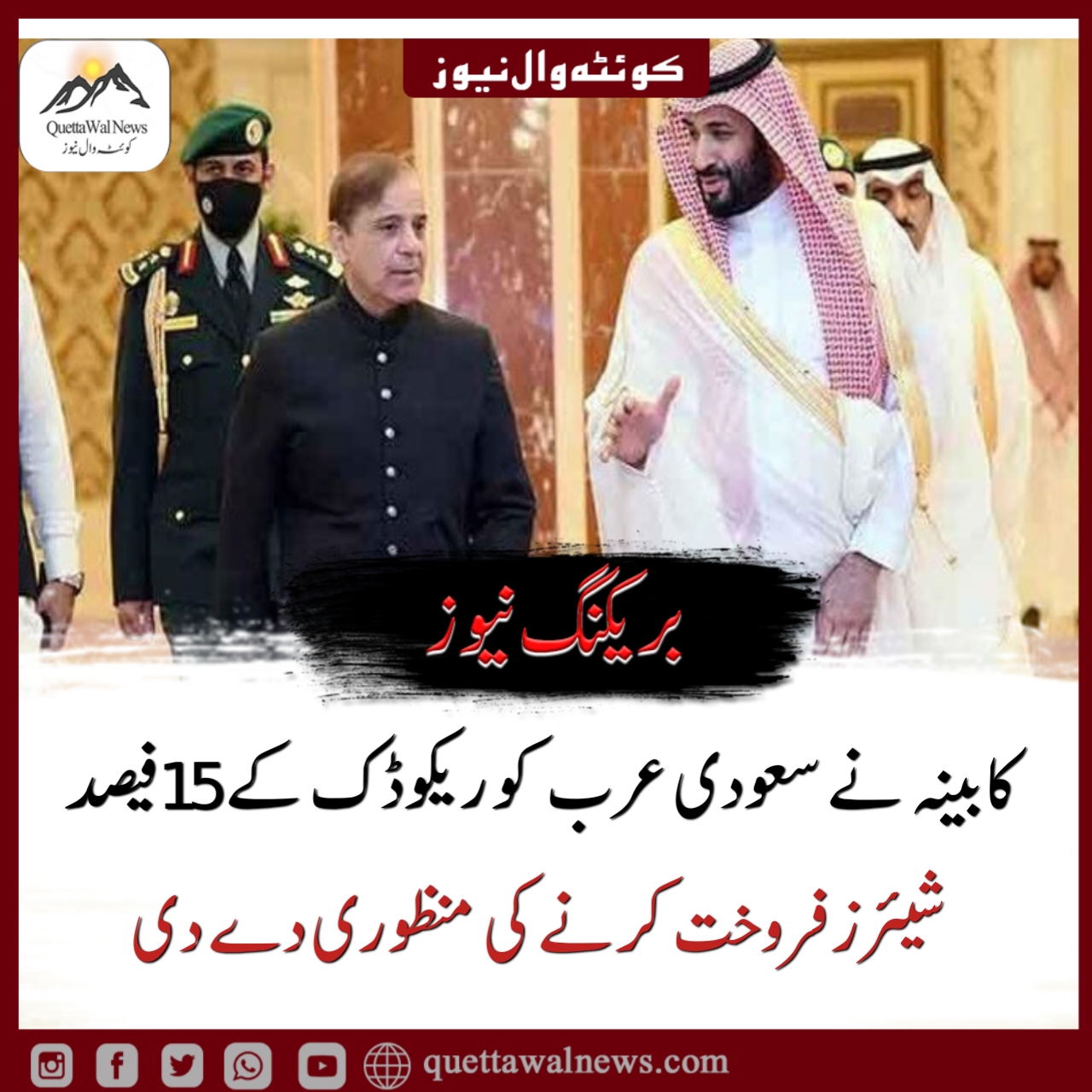 سعودی عرب کو ریکوڈک منصوبے کے 15 فیصد شیئرز فروخت کرنے کے سلسلے میں اہم پیش رفت سامنے آئی ہے۔ ذرائع کے مطابق، وفاقی کابینہ نے اس معاہدے کی توثیق کر دی ہے، جس کے تحت سعودی عرب کو 540 ملین ڈالرز میں یہ شیئرز فروخت کیے جائیں گے۔ یہ معاہدہ بین الحکومتی ٹرانزیکشن ایکٹ کے تحت براہ راست طے پایا ہے، جو دونوں ممالک کے درمیان اعتماد اور مضبوط اقتصادی تعلقات کو ظاہر کرتا ہے۔