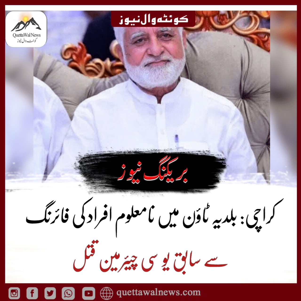 کراچی میں بلدیہ ٹاؤن میں 65 سالہ سابق چیئرمین یونین کونسل (یو سی) کو نامعلوم مسلح افراد نے فائرنگ کرکے قتل کر دیا۔