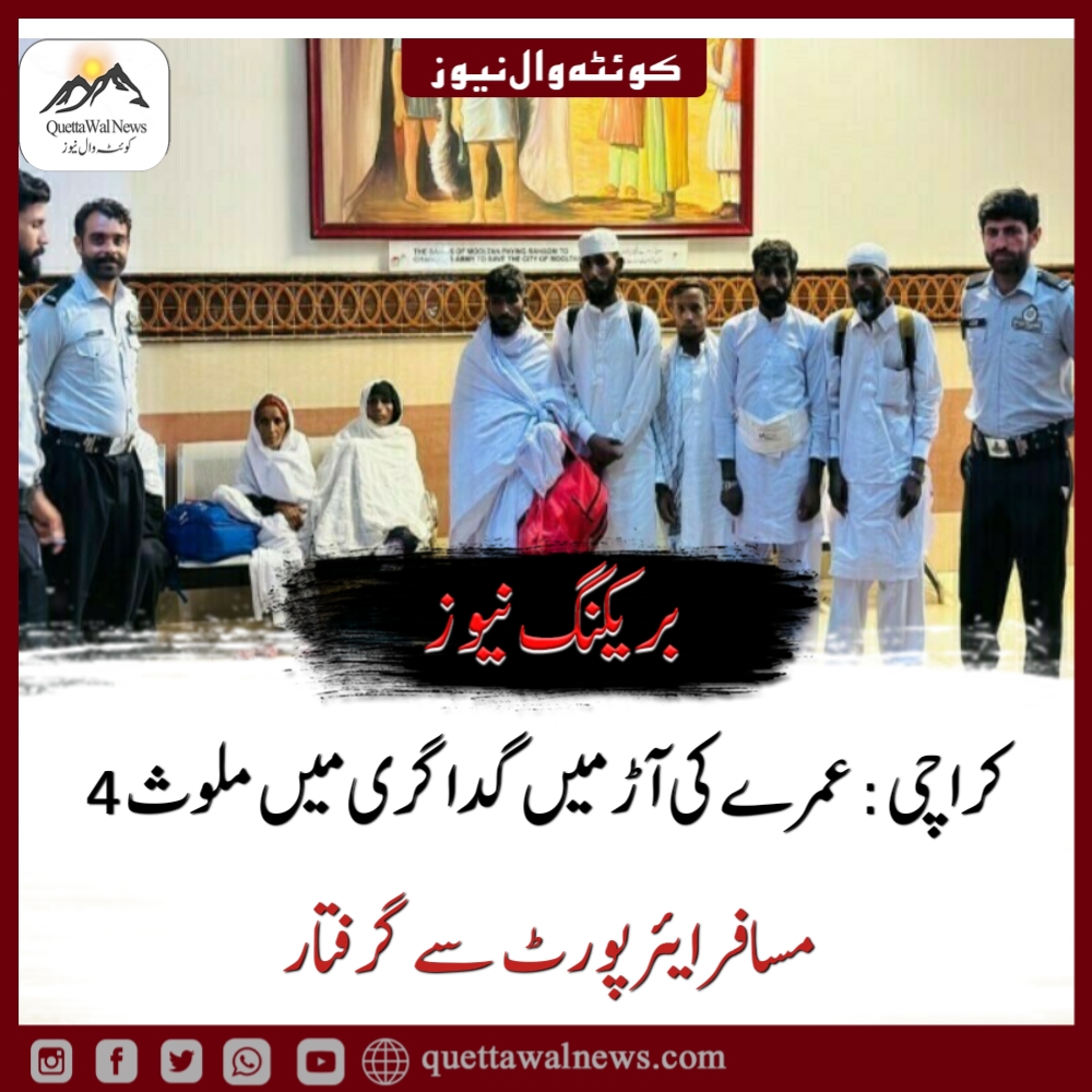 کراچی ائیرپورٹ پر ایف آئی اے امیگریشن نے کارروائی کی، اس دوران عمرے کی آڑ میں گداگری میں ملوث 4 مسافروں کو گرفتار کر لیا گیا۔