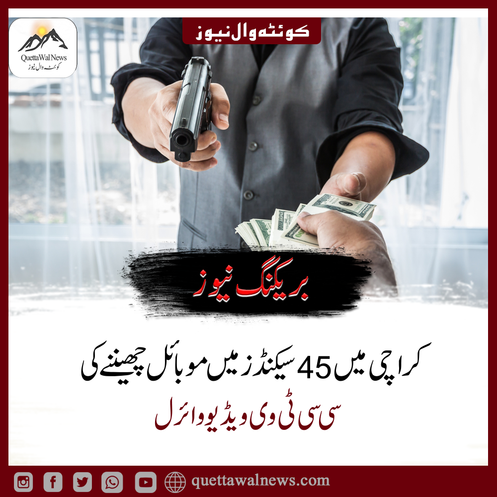 کراچی کے علاقے گلشن حدید فیز 2 میں ہونے والی ایک تیز ترین ڈکیتی کی سی سی ٹی وی ویڈیو نے شہریوں کو ہلا کر رکھ دیا ہے۔ ویڈیو میں دو ملزمان ایک نوجوان کا موبائل فون 45 سیکنڈز میں چھین کر فرار ہوتے ہوئے دکھائی دے رہے ہیں۔ ایک ملزم نے نوجوان کو گردن سے پکڑ کر خوفزدہ کیا، جبکہ دوسرے ملزم نے گن نکال کر اس کا پیچھا کیا۔ اس ڈکیتی کا واقعہ دن دہاڑے پیش آیا، جس نے علاقے میں بڑھتی ہوئی جرائم کی شرح پر سوالات اٹھا دیے ہیں۔ پولیس ملزمان کو پکڑنے کے لیے تفتیش کر رہی ہے۔