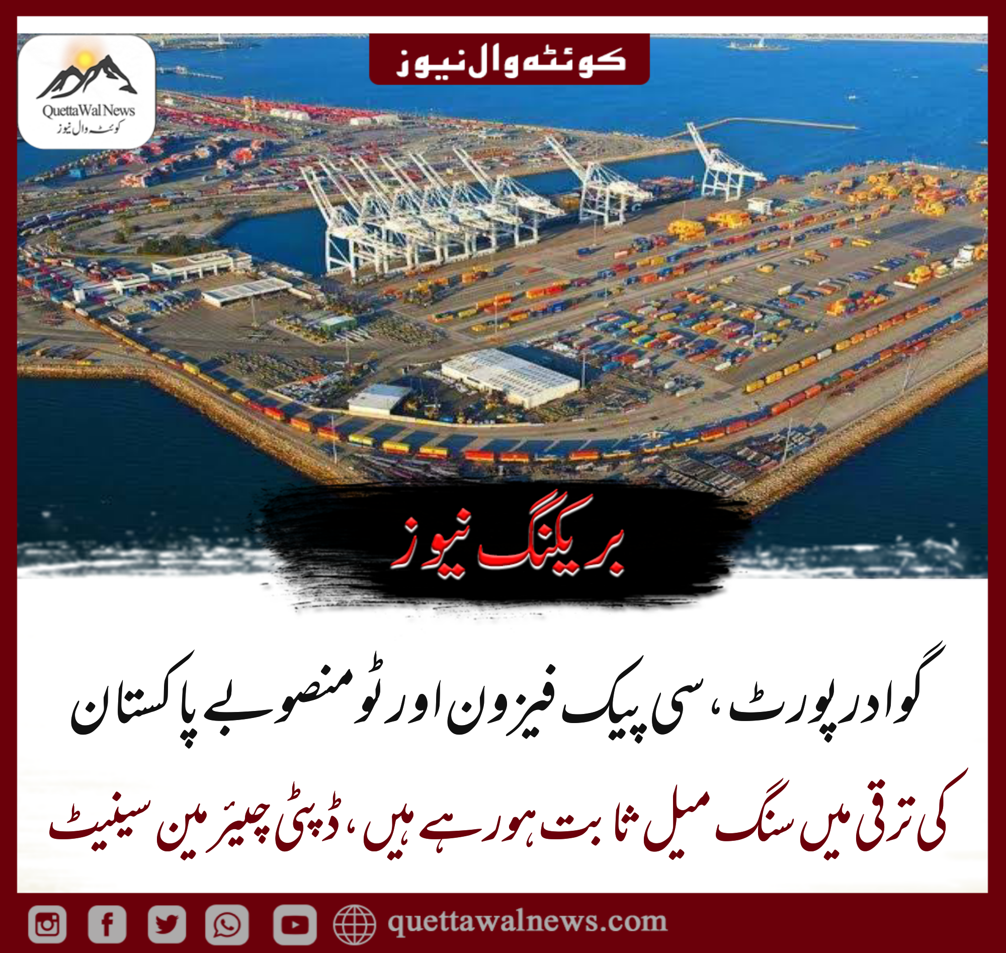 گوادر پورٹ، سی پیک فیز ون اور ٹو منصوبے پاکستان کی ترقی میں سنگ میل ثابت ہو رہے ہیں، ڈپٹی چیئرمین سینیٹ