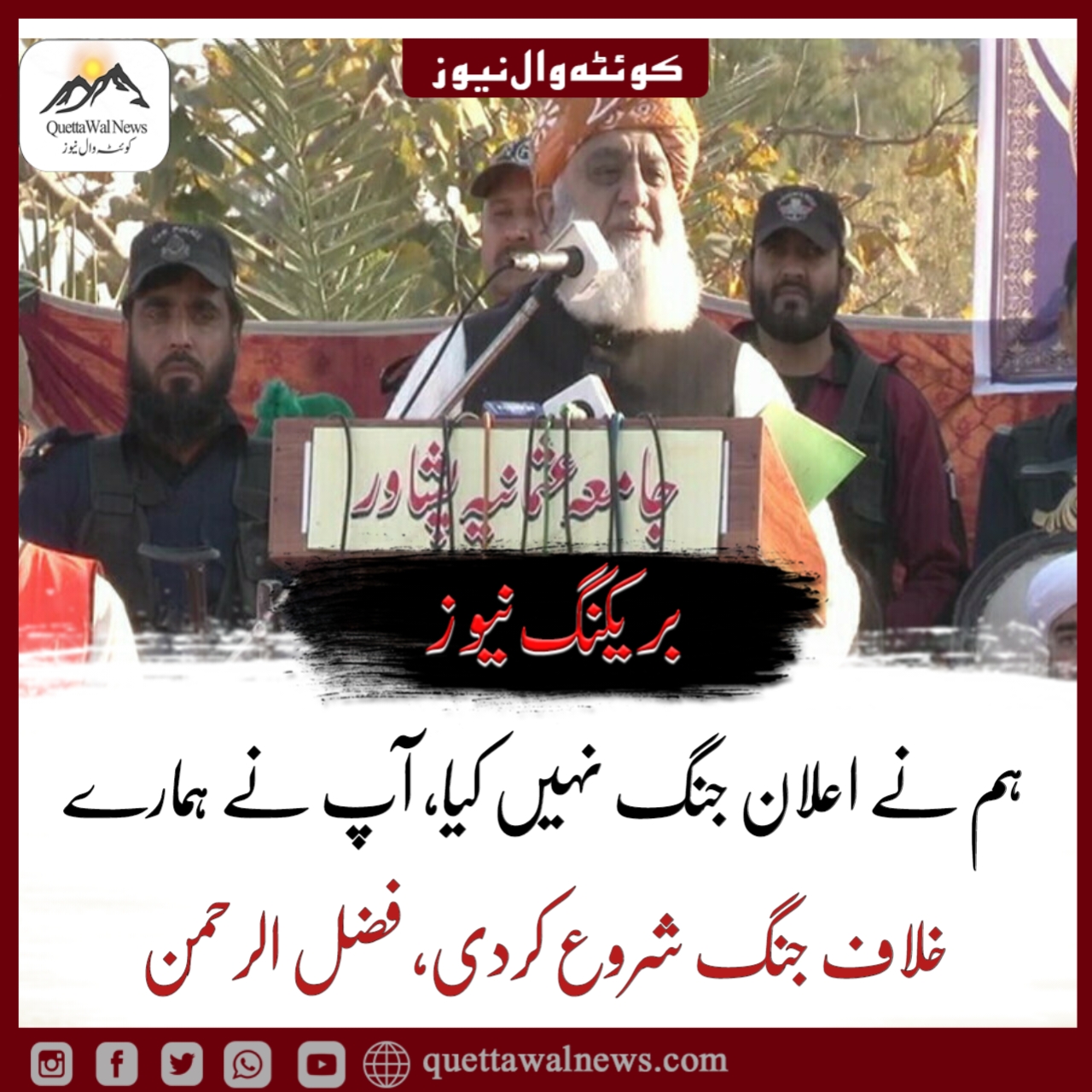 نوشہرہ میں جلسے سے خطاب کرتے ہوئے مولانا فضل الرحمٰن نے کہا کہ ہم نے آپ کے خلاف اعلان جنگ نہیں کیا، آپ نے ہمارے خلاف جنگ شروع کردی، ہم تو نبی کریم صلی اللہ علیہ وسلم کے فرمان کی اطاعت کرتے ہیں۔