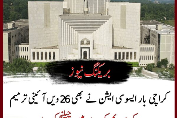 کراچی بار ایسوسی ایشن نے بھی 26 ویں آئینی ترمیم کو سپریم کورٹ میں چیلنج کردیا